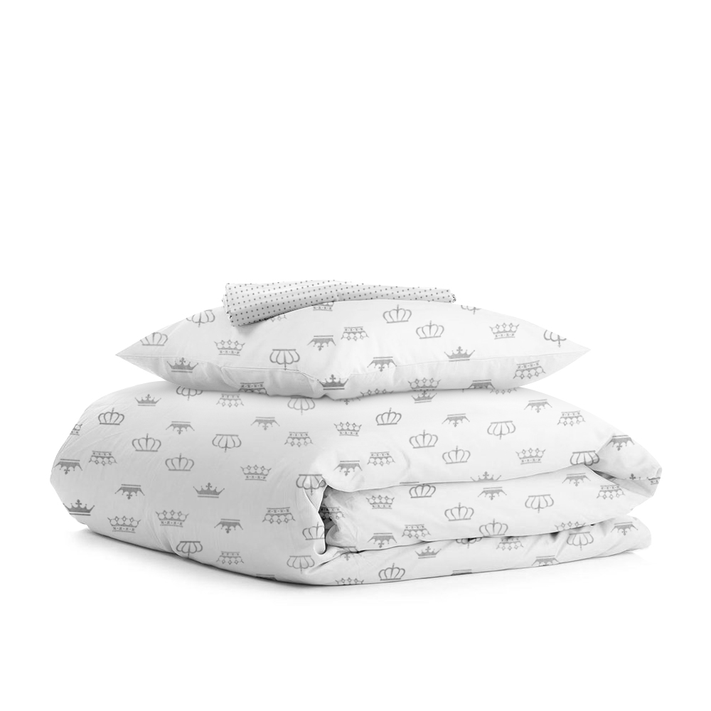 | Цвет: | Пододеяльник- Корона/оборот серый горох на белом Наволочка - Корона Простынка - Серый горох на белом |