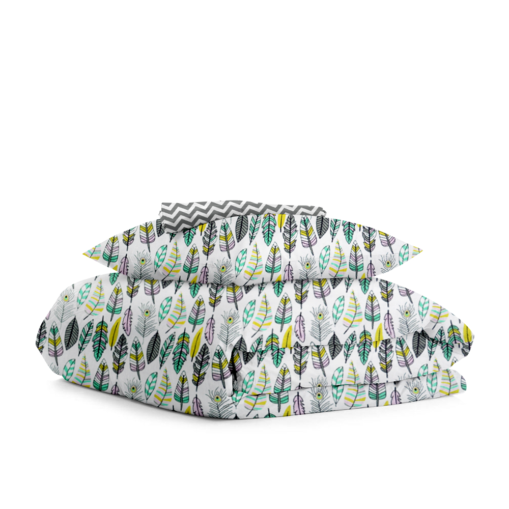 | Цвет: | Пододеяльник - Перья / Зигзаг серый Наволочка - Перья Простынка - Зигзаг серый |