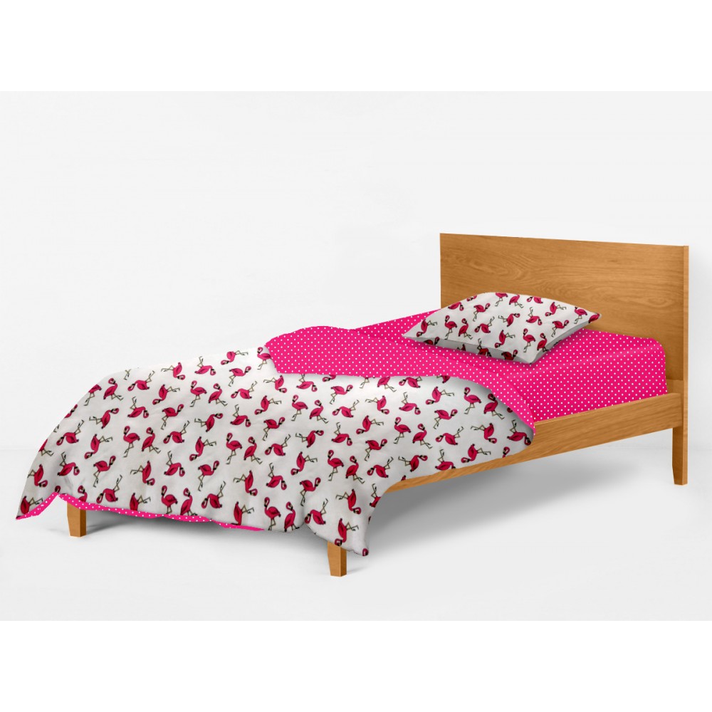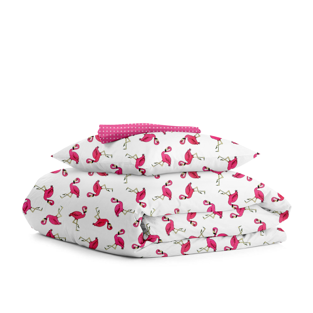 | Цвет: | Пододеяльник- Фламинго розовый/оборот белый горох на малиновом Наволочка - Фламинго розовый Простынка - Белый горох на малиновом |