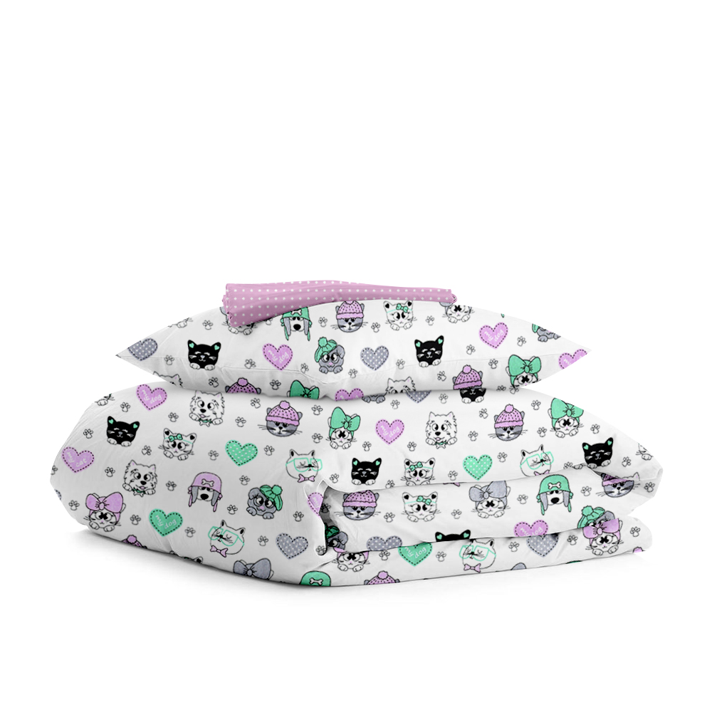 | Цвет: | Пододеяльник - Щенки / Горох розовый | Наволочка - Щенки | Простынка - Горох розовый |