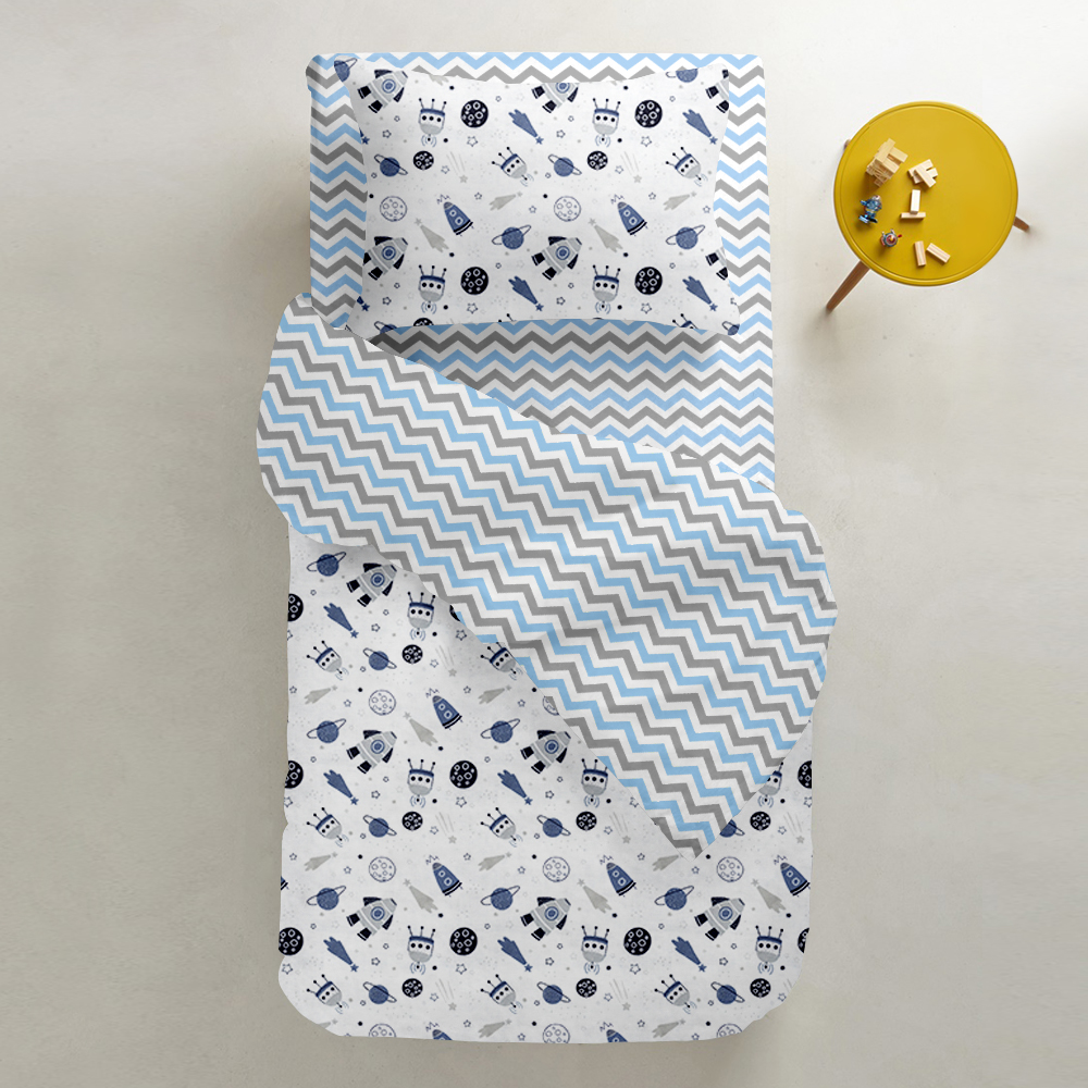 | Цвет: | Лицо - Ракеты, планеты, кометы на белом / Оборот - Зигзаг серо-голубой |