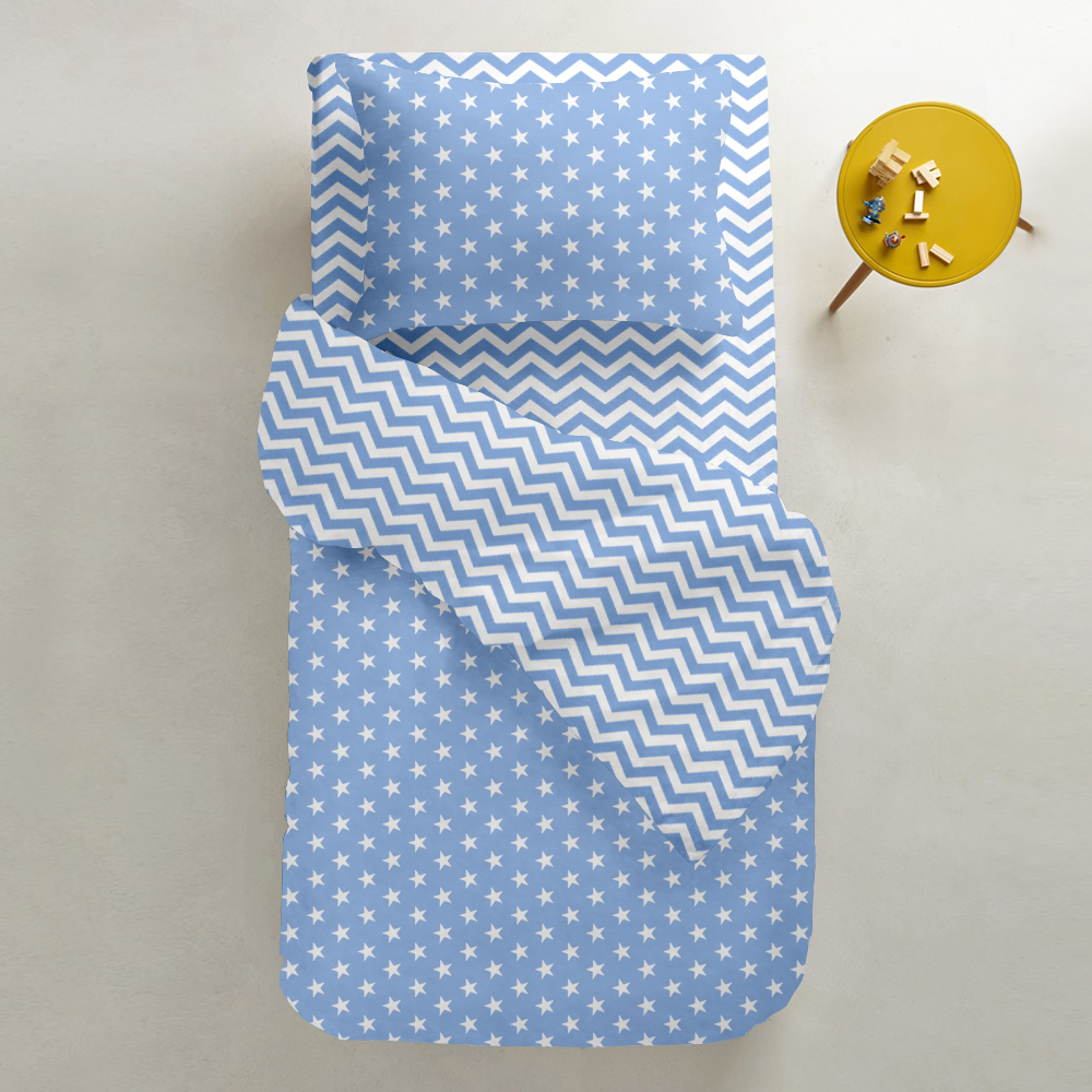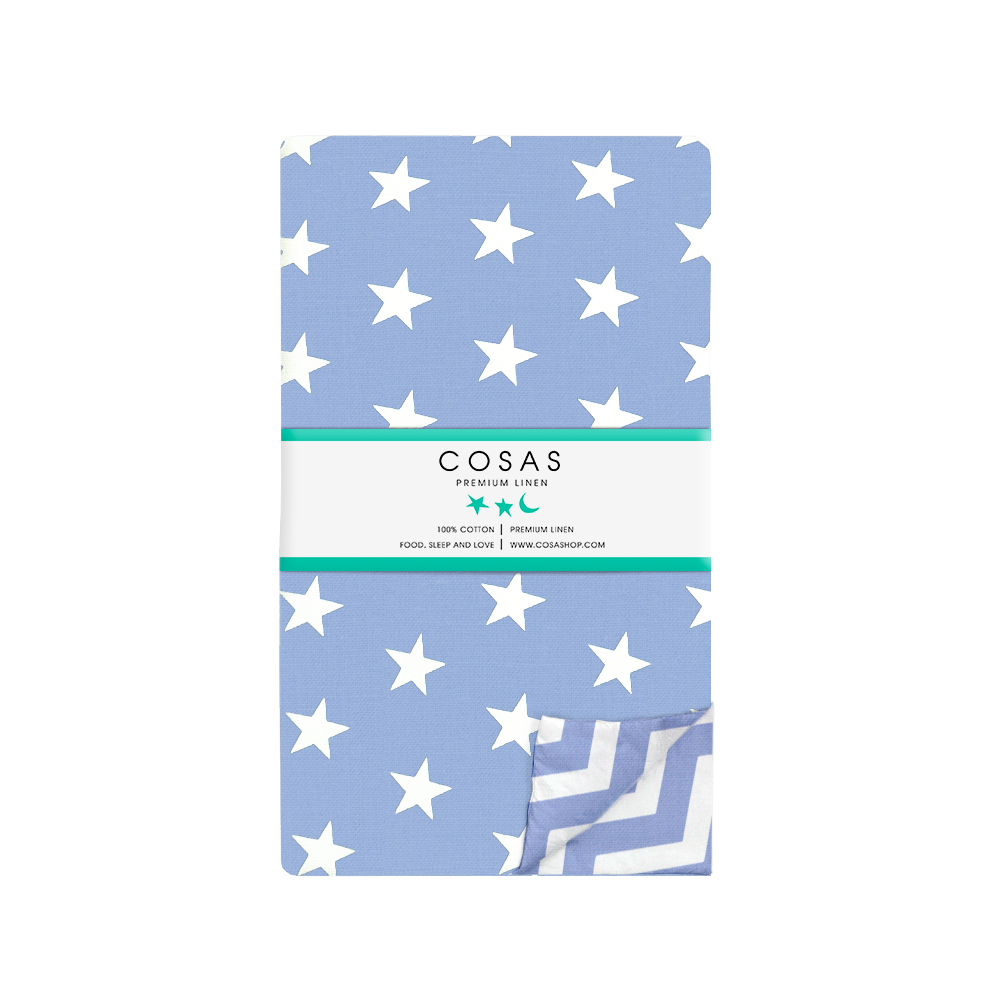 | Цвет: | Лицо - Звезды белые на светло-синем Оборот - Зигзаг бело-голубой |